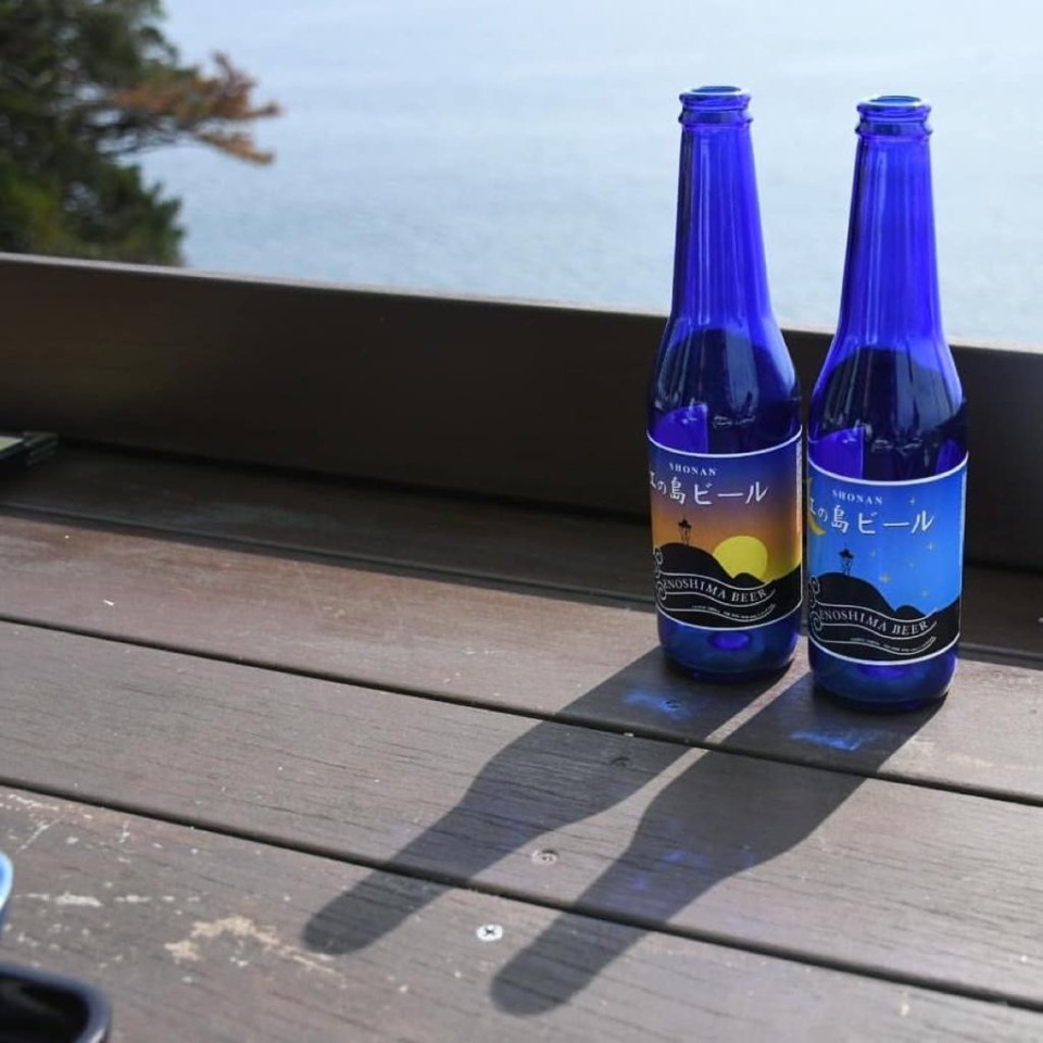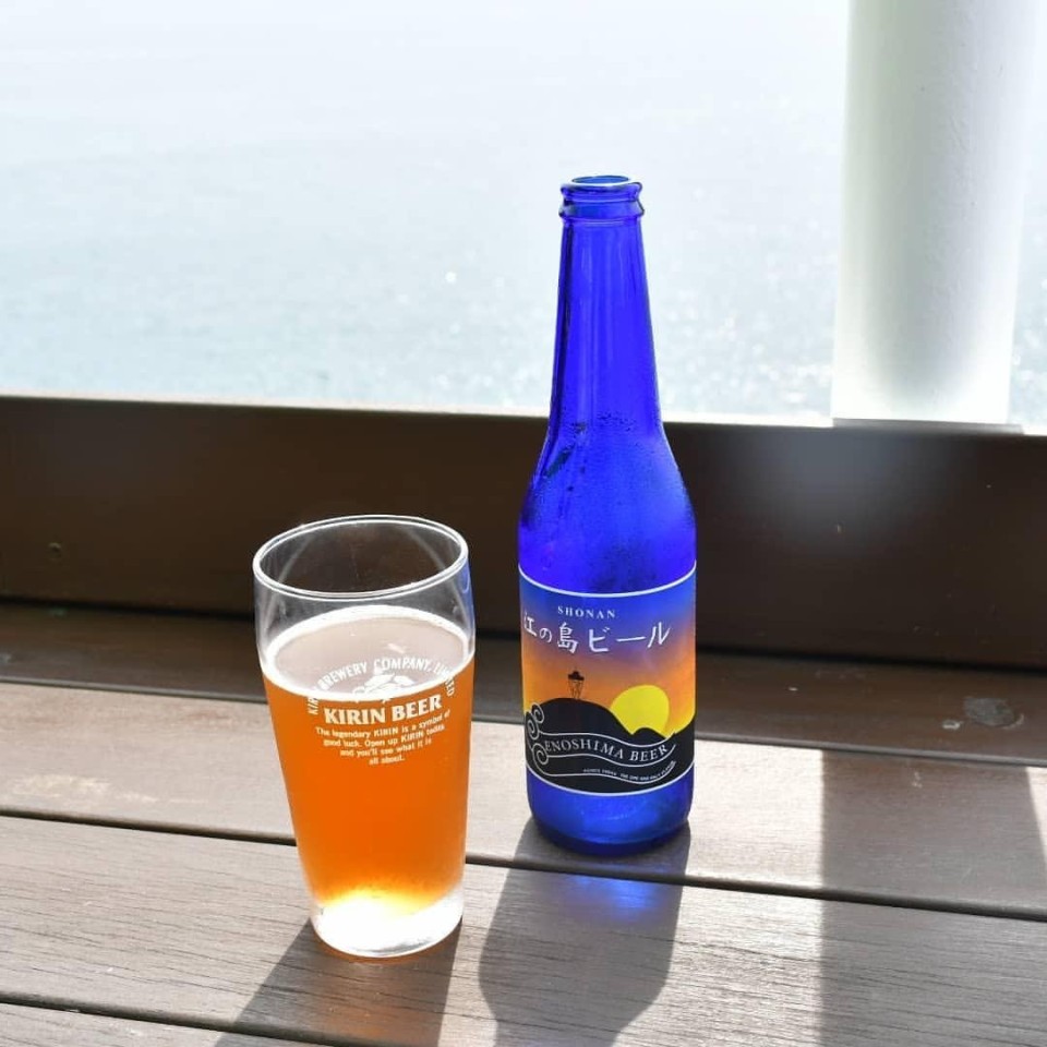 海を見ながら江ノ島ビールと海鮮料理