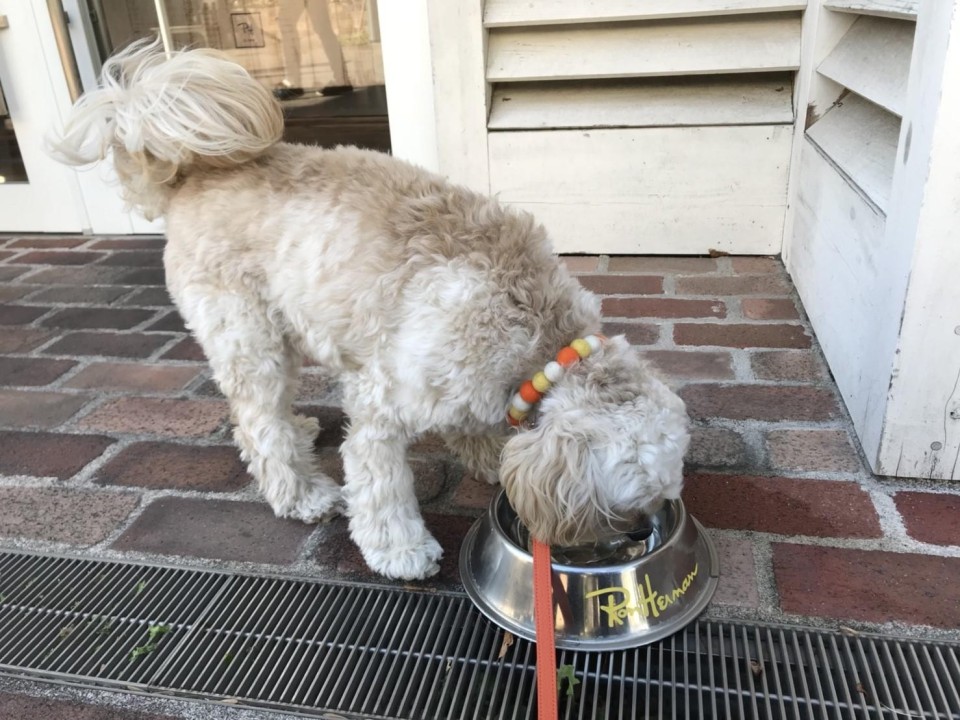 犬OKはテラス部分のみですが、店員さんは犬好きの方が多くテラスに来る度に可愛かってくれますし、入り口にはロンハーマンオリジナルのお皿でお水のサービスがあります。