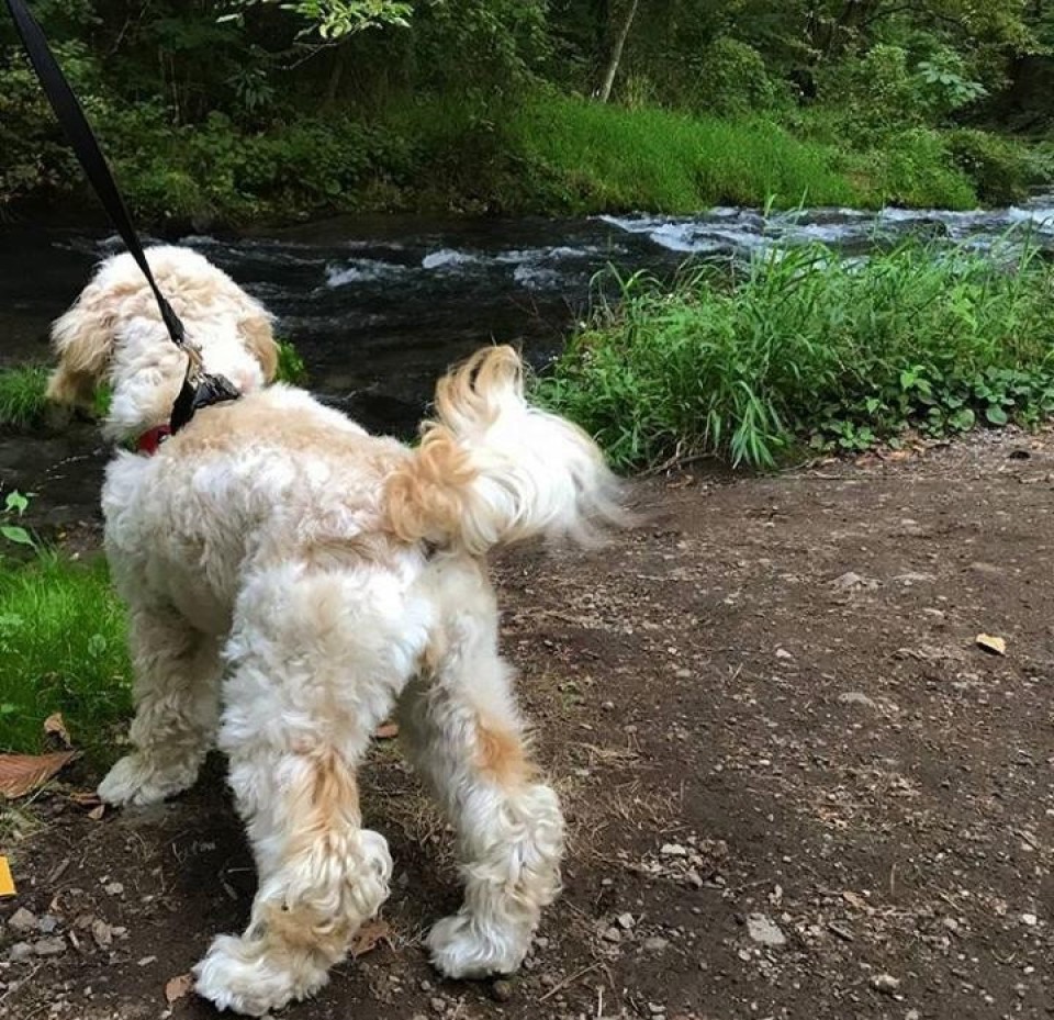 森の中の渓流沿いにある施設なので、自然をたっぷり感じることができ、愛犬も大満足の様子でした。