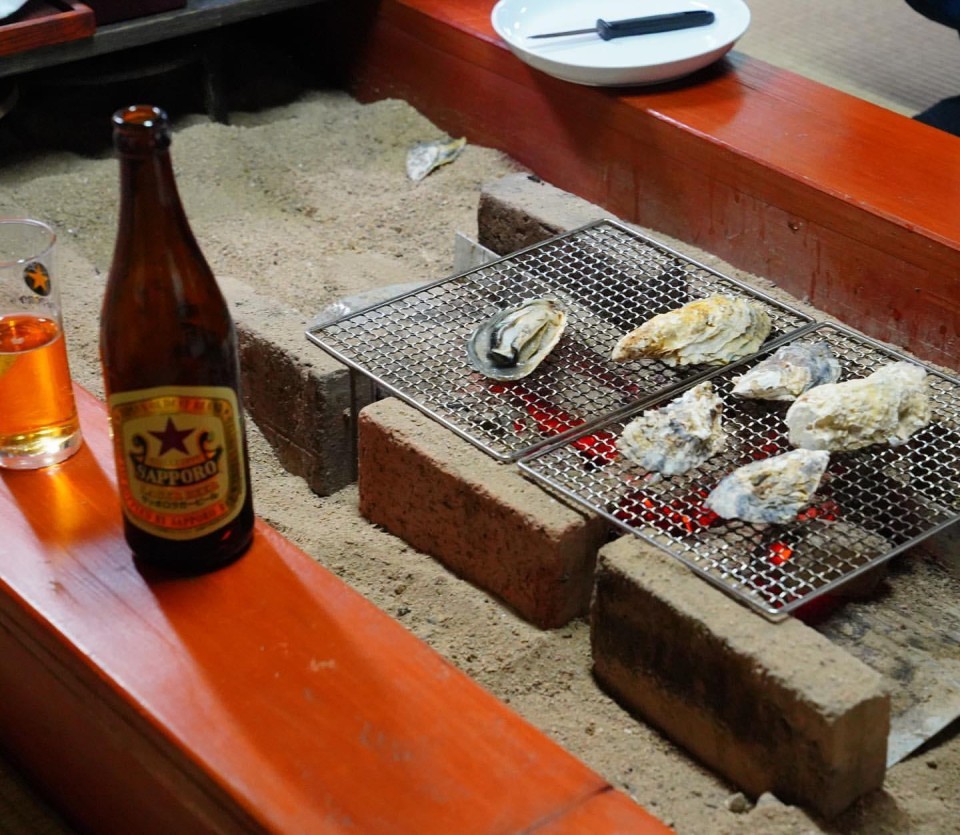 新鮮な牡蠣を囲炉裏で焼いてなんとも至福の時間(*´ 艸`)