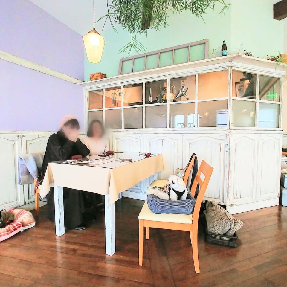 店内はわんちゃんも同伴OK。愛犬用のお水やリードフックもあり、わんちゃんに優しいお店となっています。