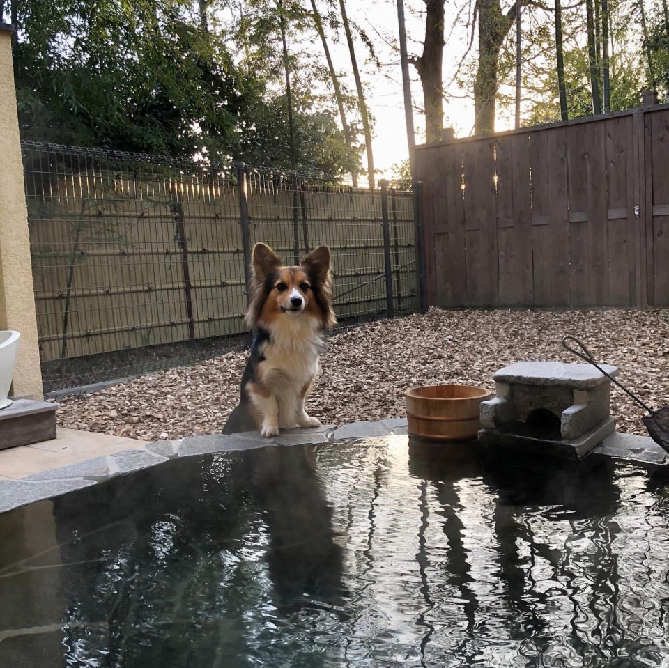 かなちゃんもドッグラン付き露天温泉を眺められて楽