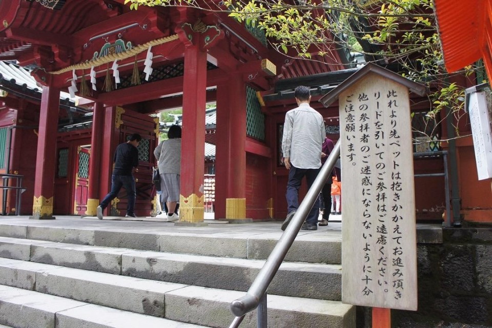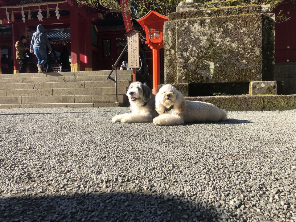 深い緑に囲まれ、パワースポットとしても知られる箱根神社です。湖に住む九頭の龍を守護神としており、九頭龍神社も祀られています。大きな杉の木に囲まれている境内は厳かで、湖畔の中に佇む「平和の鳥居」など見どころたっぷりで愛犬との散策にぴったり。わんちゃんは本殿まではリード着用で、本殿では抱っこで一緒にお参りができます。