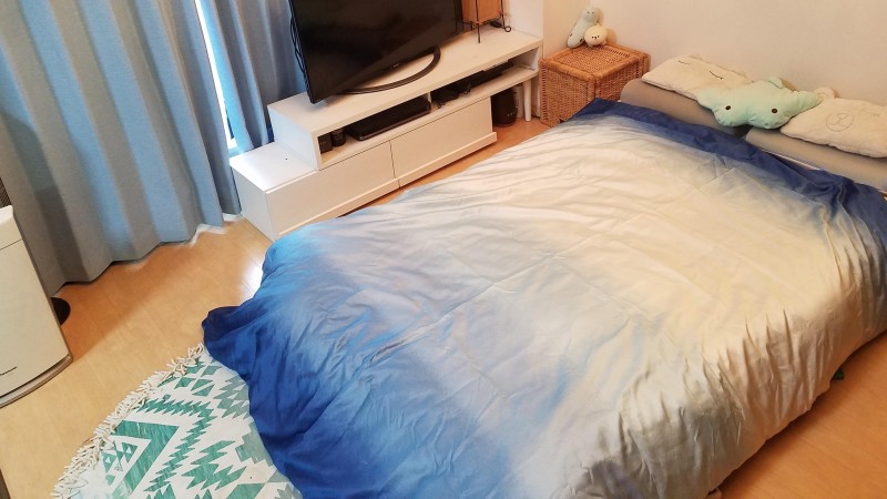 渋井さんの家のリビングにはフワフワゾーンが用意されており