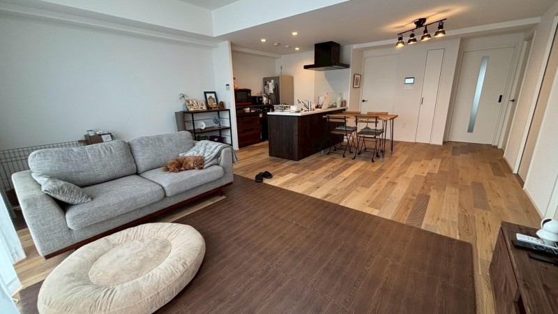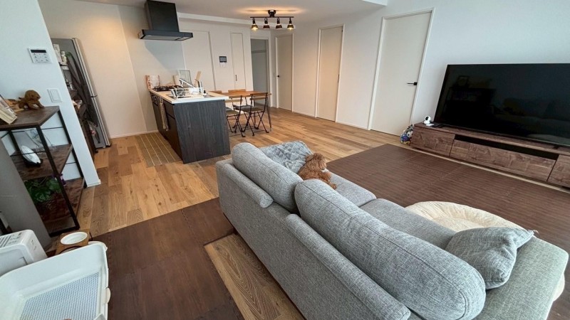 家の中では、リビングの半分に、ワンちゃんが走り回っても大丈夫な滑り止めのマットを敷いております。 ワンちゃんの気分に合わせてベランダでまったりも可能です。 お泊まりの際は、寝たいところに寝てもらえればと思います(こちらもケージフリーもしくは愛用のベット、ケージをご持参いただければ寝室に置かせていただきます)。