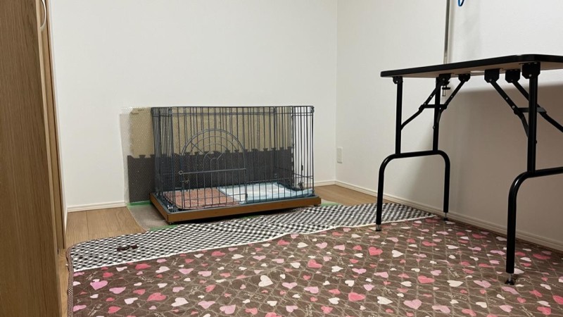 一軒家でのお預かりです。 日中はフリー(約26畳のリビング)で過ごしてもらい、夜間就寝時は完全個室にてお休みになります。
