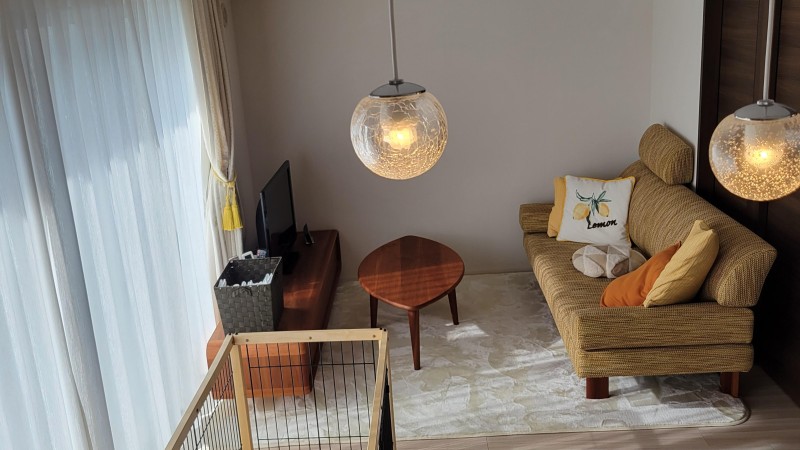 日当たりの良い15畳のリビングダイニングで1日中、ゆったり過ごして頂きます。