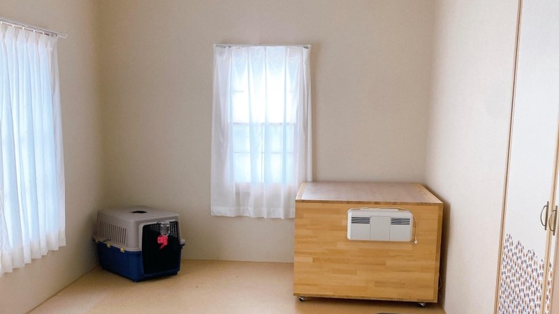 リビングとペット部屋はエアコン完備、冬は加湿器も使用しております。