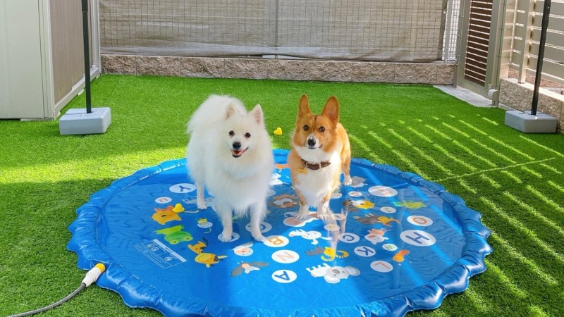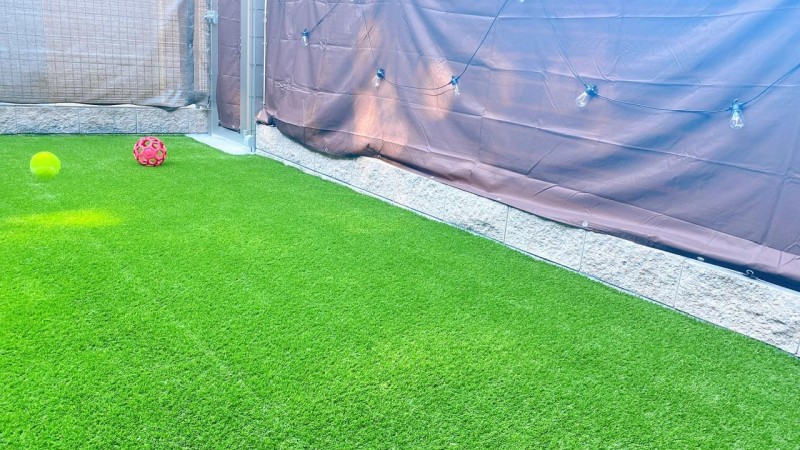 庭はリビングから続くタイルデッキと人工芝のミニドッグランとなっており、お庭でも遊べますので伸び伸びと過ごすことが出来ます。