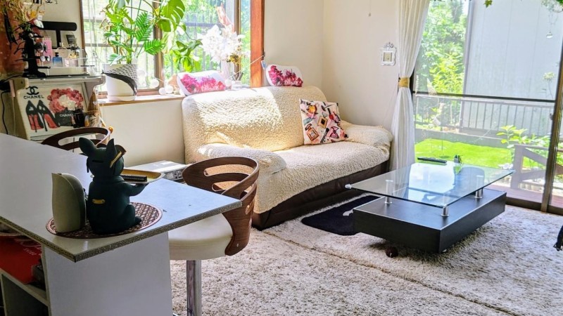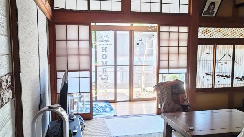 お庭のある一軒家での、お預かりになります 広い玄関ホール 緑が多く人工芝のお庭があります 和室10畳+室内縁側 リビング12畳