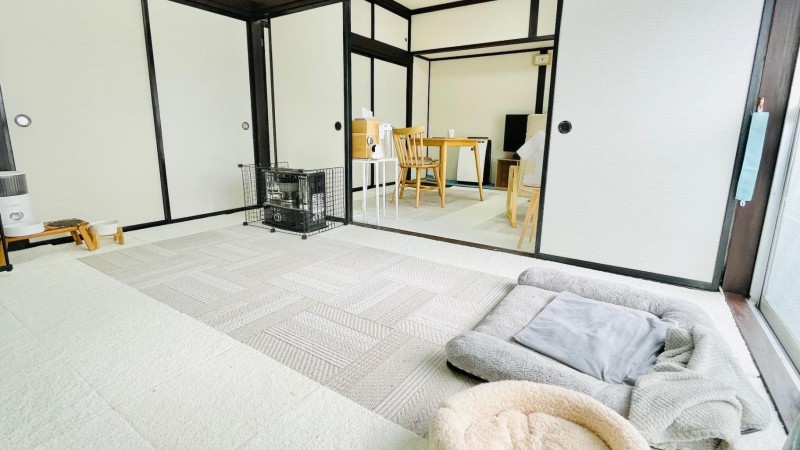 一軒家でのお預かりです。わんちゃんには12畳のリビングでのんびり過ごしてもらえます。立地が線路沿いの為、電車の音がかなり聞こえます。