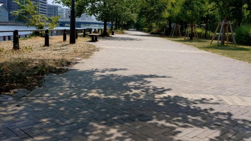 わんちゃんの多い地域です。 遊歩道や芝生の広場があるので、ゆっくりお散歩できます。