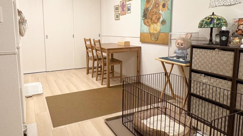 アパート(1LDK)でのお預かりです。 日中は日が差し込みとても心地良い空間になっています。ペットのための部屋のつくりになっており、床には滑り止め加工もされていて安心して過ごせます。おもちゃやベッドなども用意しており、わんちゃんが快適に過ごせるよう環境を整えております。