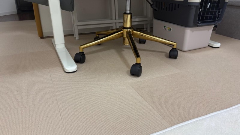 わんちゃんの足腰に負担がかからないようタイルマットを敷いています。